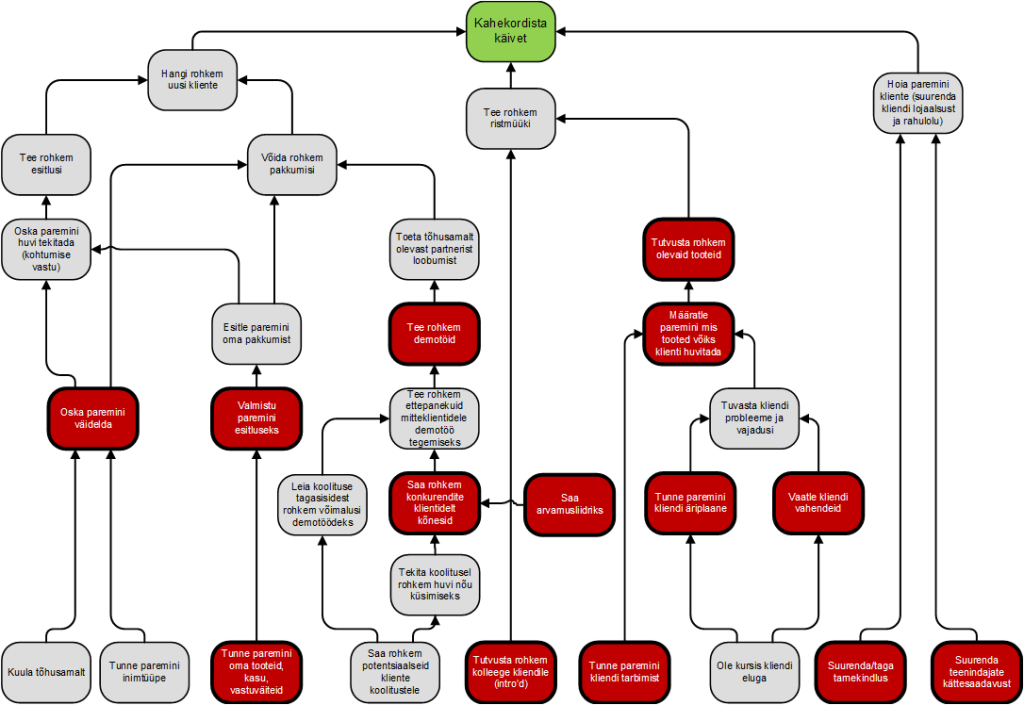 Selle artikli ilmumise ajaks olin ma juba päris kõvasti pusinud küsimuse kallal „Kuidas määratleda müügikasvu edutegurid?“ Siin on näide ühest üsna tavalisest tööst, kus ühe päeva jooksul kogu tiimiga „mõeldakse välja“ mida kõike peaks tegema selleks, et käive kasvaks.