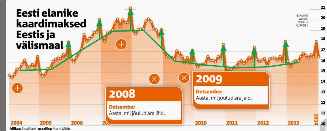 Niisiis, analüütik võrdles suvist ja jõulude tippu omavahel. Tarvitseb vaid muuta võrdlusbaasi, näiteks võrrelda novembrit ja detsembrit või detsembrit ja sellele järgnevat jaanuari, kui tulemus on sootuks teine – pole olnud aastat, kus jõulude ajal poleks inimesed rohkem kulutanud kui novembris.