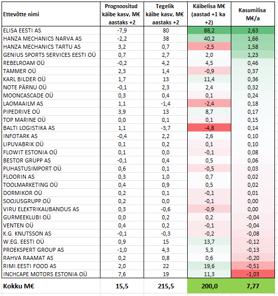 - Tegelikult kasvas nende ettevõtete käive kokku 215,5 miljoni euro võrra.